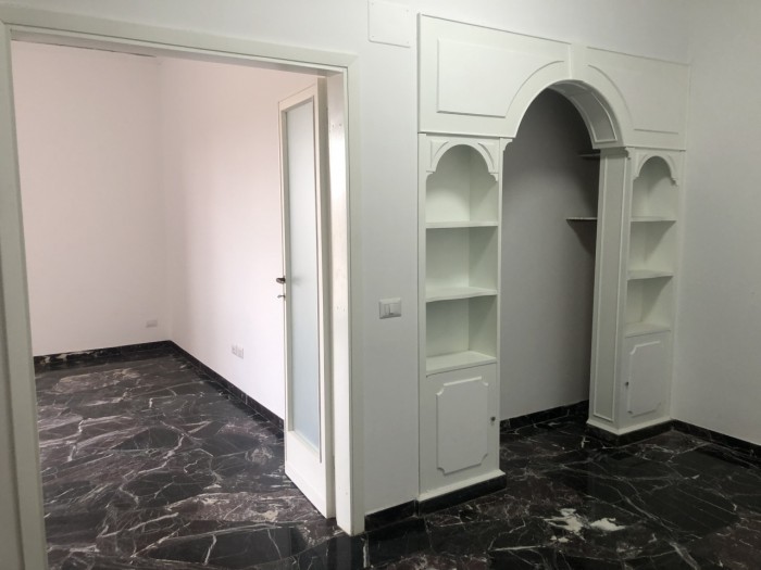 Appartamento ristrutturato mq.140 non arredato composto da ingresso, soggiorno doppio, cucina attrezzata, tinello (o studio) 2 camere, 2 bagni, ripostiglio, terrazzo verandato, balcone e box auto. L'appartamento molto luminoso, si trova in un palazzo