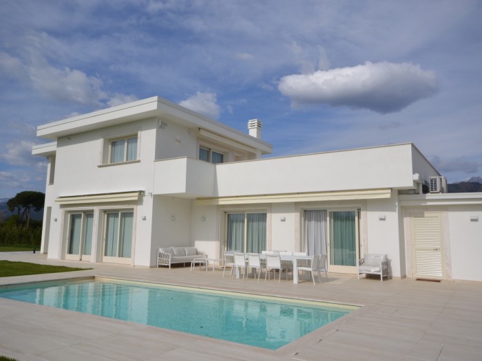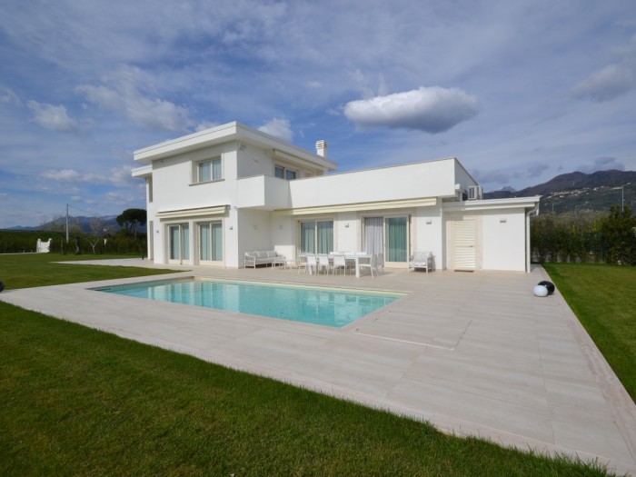 CAMPAGNA DI FORTE DEI MARMI SPLENDIDA VILLA DI NUOVA COSTRUZIONE CON PISCINA E 3.000 MQ DI GIARDINO- COMPLETAMENTE ARREDATA CON MOBILI DI LUSSO - CUCINA TINELLO SOGGIORNO DI 70 MQ CIRCA - 4 CAMERE MATRIMONIALI CON 4 BAGNI- PISCINA CON PATIO- RICH