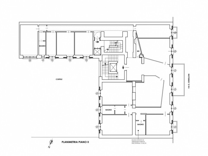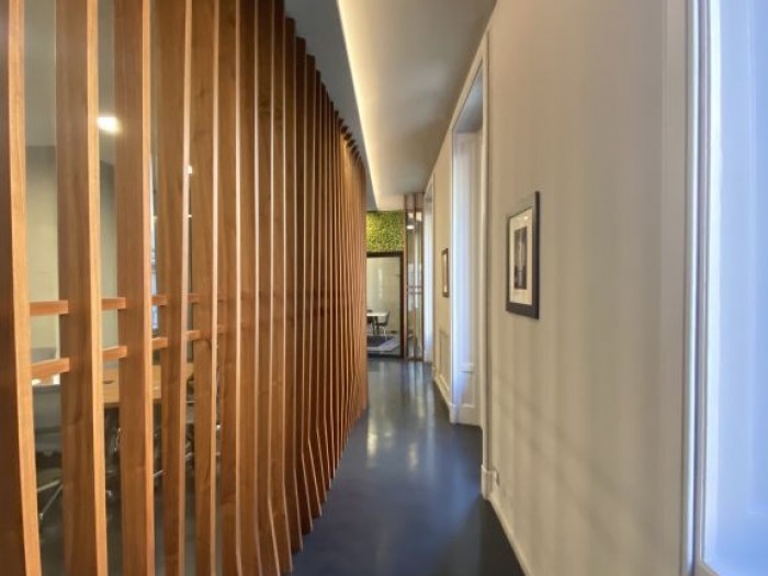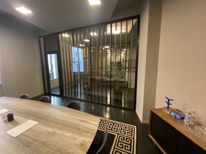 In palazzo liberty del primo novecento, signorile ufficio, posto al secondo piano di mq 370. La distribuzione interna comprende un doppio ingresso, ampio salone diviso da pareti in vetro, sette uffici, una cucina, tre bagni , due balconi ed un terraz