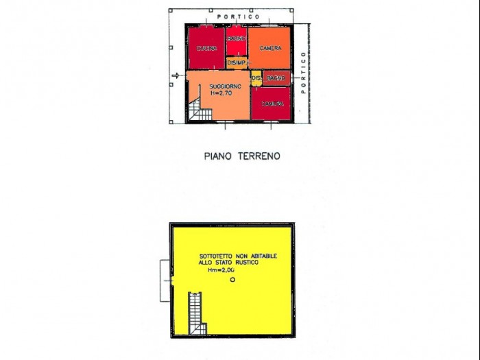 Ville a schiera, ultimate nel 2012 e mai abitate, sviluppate su due piani e così composte: ingresso in soggiorno da porticato, cucina, due camere, due disimpegno e due bagni. Dal soggiorno la scala interna conduce al sottotetto con piccolo balcone.