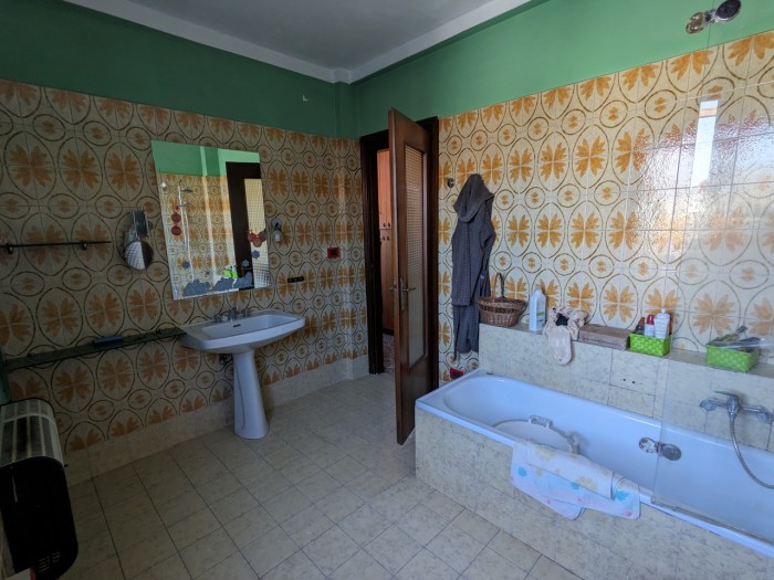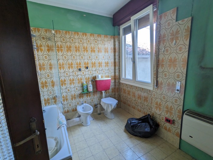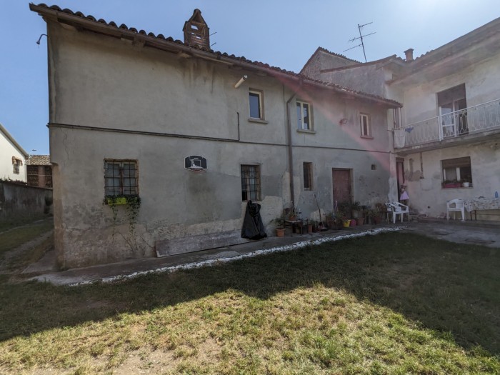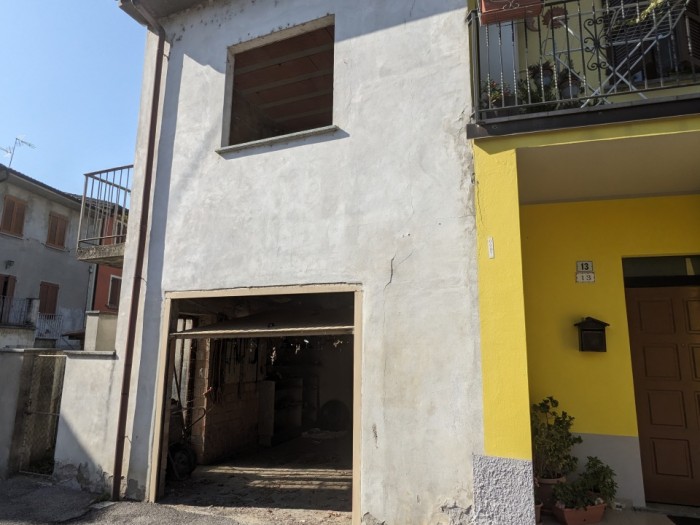 In centro, abitazione in cortile comune, di circa 130 mq. commerciali, composta al piano terra da cucina abitabile, soggiorno e piccolo giardinetto: al primo piano due camere, bagno e balcone. Cantina. Infissi e caldaia nuovi . Completa la proprietá magazzino/deposito su due livelli per un totale di circa 95 mq, composto da quattro locali. Piccolo orto in corte comune. Box singolo con locale accessorio . Classe Energetica: G - IPE: 422.31kWh/mq anno