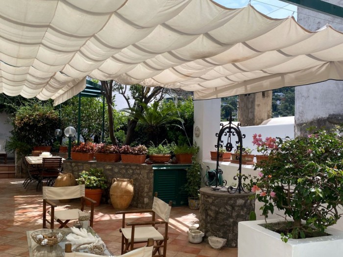 StudioMusco vende ad Anacapri Villino indipendente centralissimo con ampio esterno attrezzato. A pochi passi da Piazza Caprile, piccolo villino indipendente con ampio esterno. Perfettamente ristrutturato e ben tenuto, ha una ampia zona giorno, due camere da letto, due bagni, cucina e vari disimpegni. Il salone pranzo come la camera da letto principale, ha ampie volte, con grandi superfici vetrate che danno sul terrazzo antistante. Dalla seconda camera o studio accediamo ad una comoda area soppalcata, luminosa e vivibile. L' esterno è particolarmente curato, con varie zone ombreggiate, allestite con tavoli, sedie, divani. E' presente una cisterna sotto il terrazzo cui attinge il pozzo. Piccola dependance in terrazzo. L' immobile è in posizione invidiabile, a pochi passi da tutti i servizi essenziali, autobus, taxi, parcheggio motorini, ma risulta assolutamente tranquillo e silenzioso non affacciando direttamente sulle rumorose strade carrabili. Prezzo molto interessante per una rapida definizione. Per altre info o concordare una visita tel o wap 338.85.53.351. Classe Energetica: G - IPE: 141.00kWh/mq anno