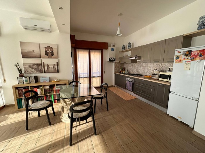 Scopri questo splendido appartamento completamente ristrutturato, situato al terzo piano di un palazzo dotato di ascensore. Con una superficie calpestabile di 125 mq, offre spazi ampi e luminosi, ideali per chi cerca comfort e modernità. L'ingresso conduce a un doppio salone con cucina in open space, perfetto per momenti di convivialità. Le tre camere da letto garantiscono spazio e privacy, mentre il bagno e la dispensa completano la zona notte.