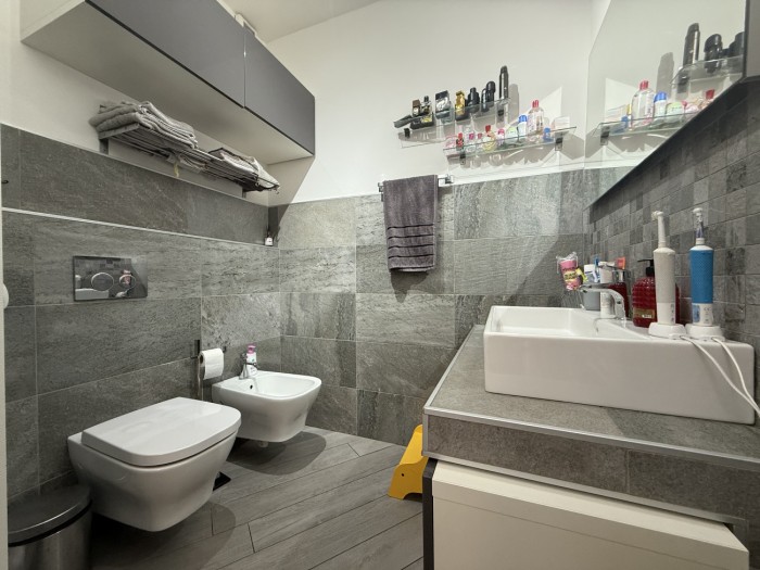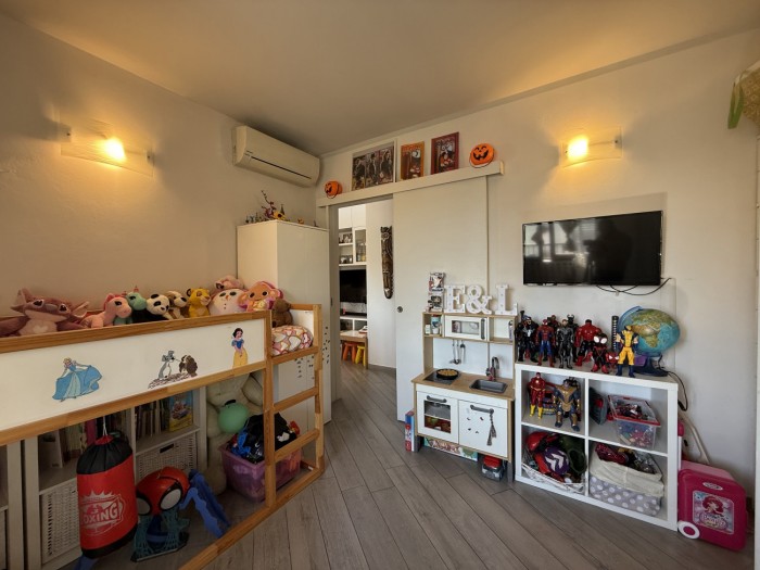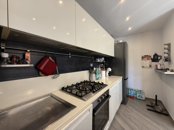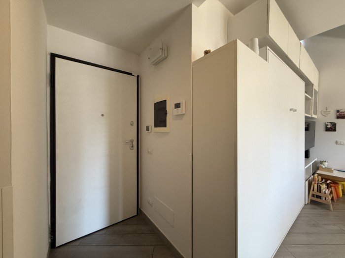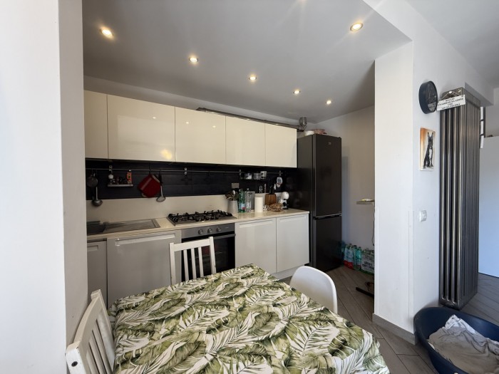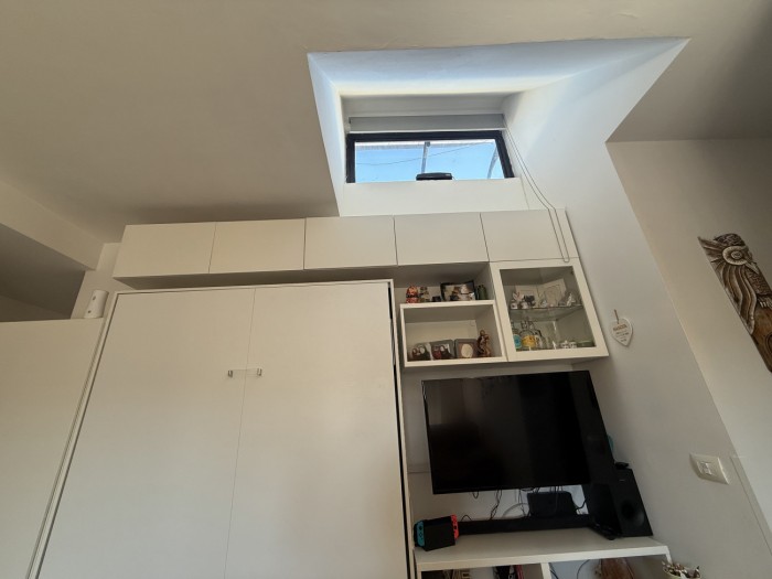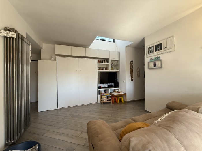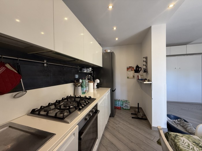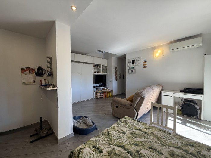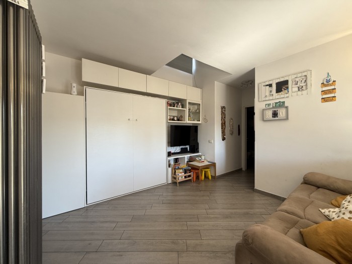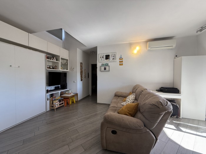 L appartamento, caratterizzato da ottima luminosità e ambienti ben distribuiti, si compone di zona giorno con angolo cottura e accesso diretto alla terrazza, camera matrimoniale e bagno privo di finestra ma dotato di impianto di aerazione forzata.