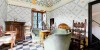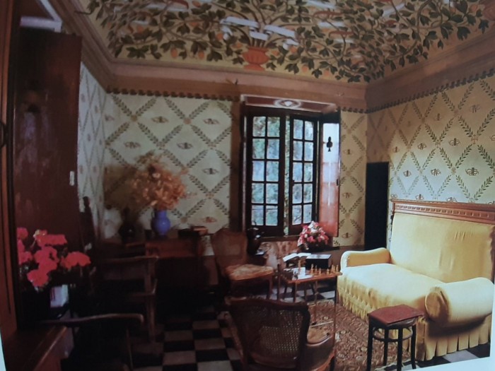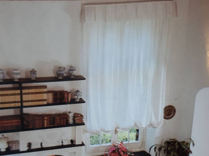 ALL' INTERNO TROVIAMO UNO SCENOGRAFICO SALONE PER I RICEVIMENTI UN SALOTTO CON CAMINO FUNZIONANTE, E' CARATTERIZZATO DA SOFFITTI MOLTO ALTI FINEMENTE DECORATI, IL PAVIMENTO E' IN MARMO COL TOZZETTO E LE SCALE IN ARDESIA.