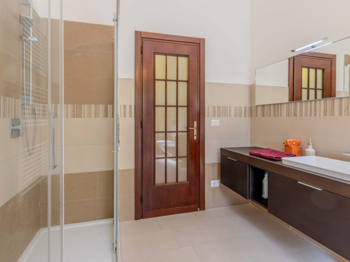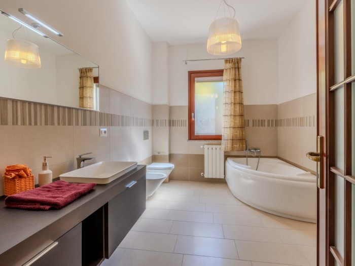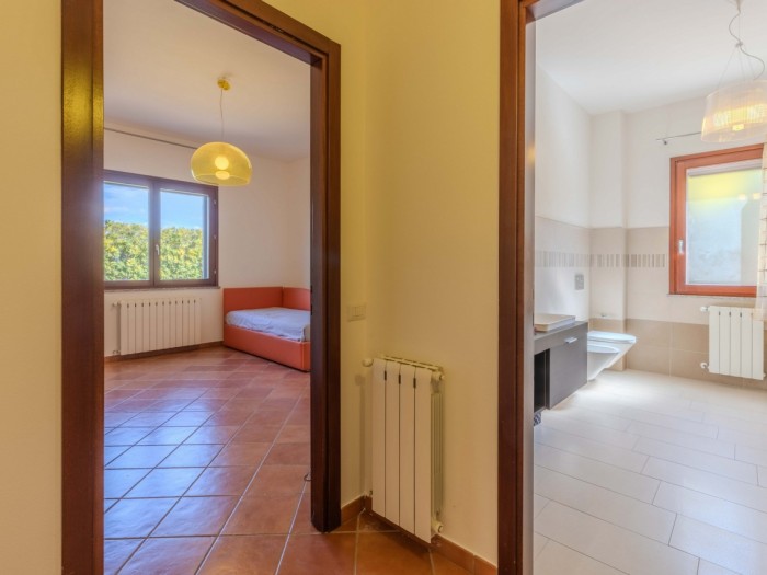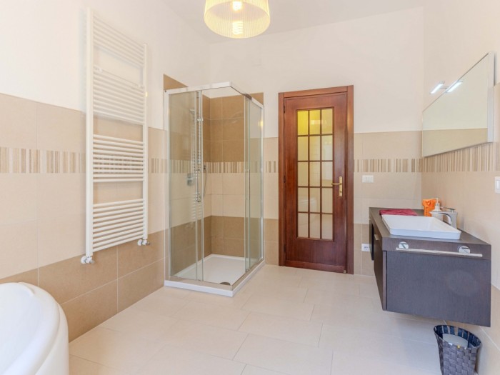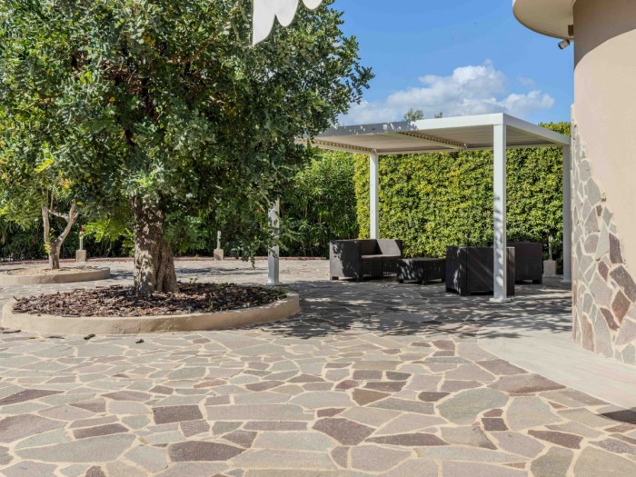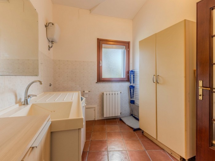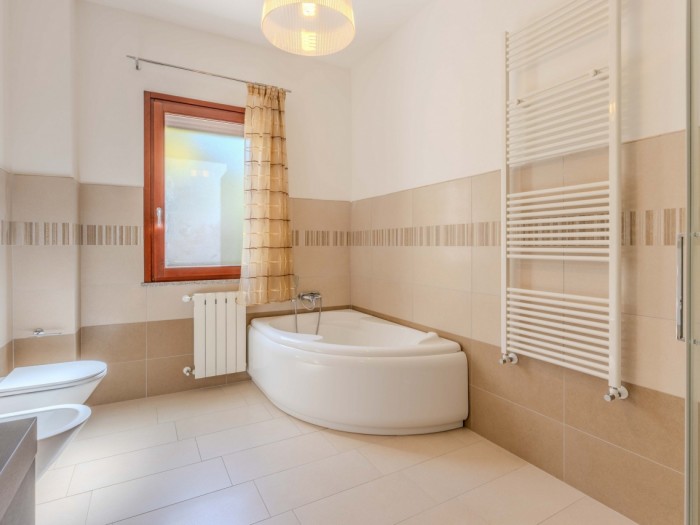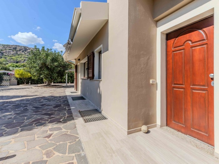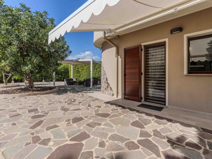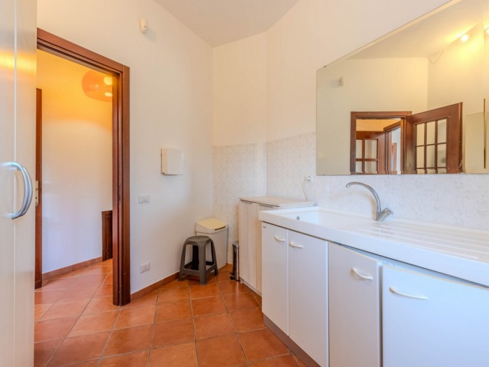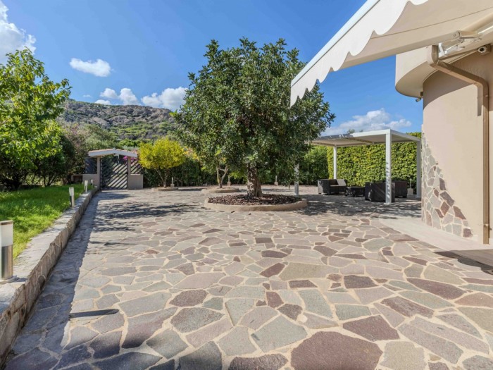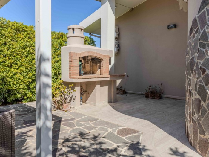 Villa Paula -- un'oasi di comfort in armonia con la natura --- Situata in zona Pauliara, Strada 11, nella splendida cornice residenziale di Poggio dei Pini, a Capoterra, questa villa indipendente ÃÂè una residenza di prestigio in perfetta armonia con la natura circostante, La meticolosa cura dei dettagli costruttivi e la regolare manutenzione offrono un rifugio tranquillo e ben attrezzato, a breve distanza da Cagliari e dal mare. **Cura dell'estetica e della funzionalitÃÂànegli esterni** Villa Paula si trova in un lotto di 1200 mq, immersa in un lussureggiante giardino mediterraneo caratterizzato da siepi alte e curate che garantiscono massima privacy. Il giardino ÃÂè percorso da viali pavimentati in pietra a mosaico e ospita alberi da frutto (carrubo, limone, mandarino) e piante autoctone, con un sistema di irrigazione per una facile gestione. Le facciate, ridipinte circa due anni fa, sono completate da inserti in pietra, mentre un originale elemento a torre rotondo conferisce un tocco distintivo all'architettura. Gli spazi esterni sono un invito alla convivialitÃÂàe al relax: un'ampia veranda coperta offre una zona pranzo all'aperto, mentre una moderna pergola bianca crea un'ulteriore area lounge ombreggiata. Non manca un pratico barbecue in muratura, ideale per le grigliate estive. L'accesso alla proprietÃÂàÃÂè agevolato da un cancello elettrico, che si apre su un viale carrabile in pietra che conduce a un ampio piazzale e alla rampa del garage. **Spazi ampi, funzionali e luminosi negli interni** Villa Paula offre 340 mq di spazi coperti su tre livelli collegati un'elegante scala interna con gradini in legno. ïÃÂàIl piano seminterrato ÃÂè un'area versatile e spaziosa, ben isolata e circondata da un cavedio perimetrale. Questo livello ospita un'ampia taverna/soggiorno completa di camino, un bagno/lavanderia attrezzato e diversi locali cantina/deposito, ideali per ogni esigenza. Il grande garage con portone sezionale basculante (sostituito tre anni fa) offre ampio spazio per piÃÂù di un veicolo e funge anche da laboratorio/deposito attrezzi. ïÃÂàAl piano terra si accede da un luminoso ingresso in cotto. Dal soggiorno, estremamente spazioso e luminoso grazie alle ampie finestre con viste sul verde e sulle montagne, si accede direttamente alla veranda esterna. L'ampia e funzionale cucina ÃÂè completamente attrezzata con elettrodomestici incassati e caratterizzata da un'isola centrale con piano in Okite e un secondo camino. Completano il piano una camera da letto, un bagno moderno con vasca e doccia, e un secondo ampio bagno che funge da lavanderia. ïÃÂàIl primo piano mansardato ÃÂè dedicato interamente alla zona notte e comprende due camere da letto, una delle quali climatizzata con split inverter. Su questo piano troviamo, inoltre, un bagno moderno, con doppi lavabi, sanitari sospesi e una spaziosa doccia. **Comfort, efficienza energetica e sicurezza** L'eccellente efficienza energetica (Classe energetica A2) ÃÂè una delle caratteristiche di villa Paula. La casa, infatti, ÃÂè dotata di un'ottima coibentazione termica, ulteriormente migliorata dalla recente sostituzione di tutti i vetri con modelli a taglio termico-acustico e dall'installazione di zanzariere su tutte le finestre. Il sistema di riscaldamento ÃÂè autonomo, con termosifoni presenti in ogni ambiente al piano terra e primo, alimentato a gas GPL (bombolone esterno da circa 1.000 litri) e integrato da pompe di calore/climatizzatori inverter. Ulteriori dettagli di pregio includono tende da sole esterne, tende interne di alta qualitÃÂàin varie stanze con bastoni in acciaio nel salone, e un'illuminazione ricercata con lampade e lampadari Kartell in tutta la casa. L'impianto idrico ÃÂè collegato all'acquedotto pubblico e supportato da una riserva idrica di circa 10.000 litri in due cisterne interrate. La sicurezza ÃÂè garantita da un sistema di videosorveglianza con cinque telecamere esterne e un impianto d'allarme interno. **piena conformitÃÂàa tutte le normative e ottime condizioni** La proprietÃÂàÃÂè pienamente conforme a tutte le normative edilizie, igienico-sanitarie e di superamento delle barriere architettoniche. La costante manutenzione e le recenti migliorie rendono Villa Paula pronta per essere abitata, offrendo un elevato standard di vita in un contesto naturale e tranquillo. La sua eccellente efficienza energetica ÃÂè testimoniata dalla classe energetica A2, un fattore che ne sottolinea ulteriormente il valore e la sostenibilitÃÂà. Classe Energetica certificata A2 Prezzo: euro 650.000. info@sardahousing.com - www.sardahousing.com ------ Poggio dei Pini Poggio dei Pini ÃÂè un quartiere di Capoterra, nella cittÃÂàmetropolitana di Cagliari, nella Sardegna meridionale, che conta circa 2 000 abitanti. Distanze approssimative: 6 km da Capoterra, 21 km da Cagliari, 5 km dal mare. Classe Energetica: A2 - IPE: 0.00kWh/mq anno