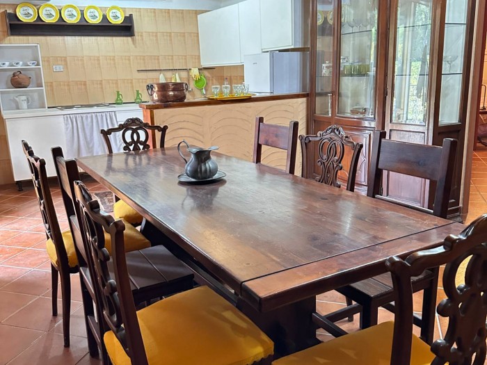 Completano la proprietà un grande garage, una taverna con forno a legna e un bagno di servizio. Riscaldamento autonomo, aria condizionata con pompa di calore, classe energetica F. Ideale per chi desidera spazio, privacy e comfort a contatto con la natura.