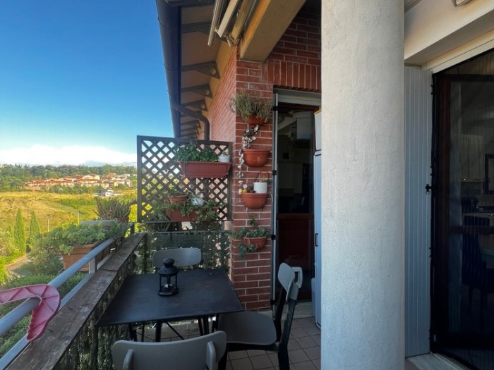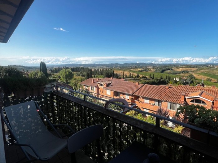 Vendesi nella parte nord della città, sul Comune di Monteriggioni, Via del Pozzo in località San Martino, appartamento di recente costruzione posto al piano primo ed ultimo di una piccola palazzina a mattoncini. Vi si accede tramite scala esterna e sviluppa per 75 mq divisi tra un ampio soggiorno con termo camino ed un angolo cottura separato, dalla zona pranzo sia accede ad un comodo terrazzo abitabile e panoramico con piacevoli affacci verso la campagna; la zona notte si divide tra un ampia camera matrimoniale, una camera singola, un bagno grande finestrato con balcone ed un secondo bagno/lavanderia. Completano questo immobile dal taglio perfetto per una giovane famiglia, un posto auto scoperto in area condominiale, un garage di 24 mq ed un secondo garage di 18 mq con bagno e con accesso ad un giardinetto di 30 mq. L'immobile si presenta in buone condizioni generali, da fare solo qualche ammodernamento, è dotato di aria condizionata con utenze autonome ed impianti certificati. Per informazioni 338 5495159 Classe Energetica: E - IPE: 0.00kWh/mq anno