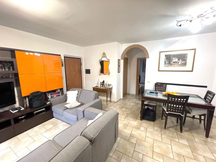 Al piano terra di condominio di recente costruzione appartamento in buone condizioni di circa 85 mq. cosi composto: ingresso, ampio soggiorno con cucina a vista e uscita diretta su resede di circa 25 mq., due camere matrimoniali entrambe con loggia coperta, bagno grande e ripostiglio. Completano la proprietà una cantina al piano terreno e un garage di mq.18 circa. Per informazioni 338 5495159 Classe Energetica: C - IPE: 67.12kWh/mq anno