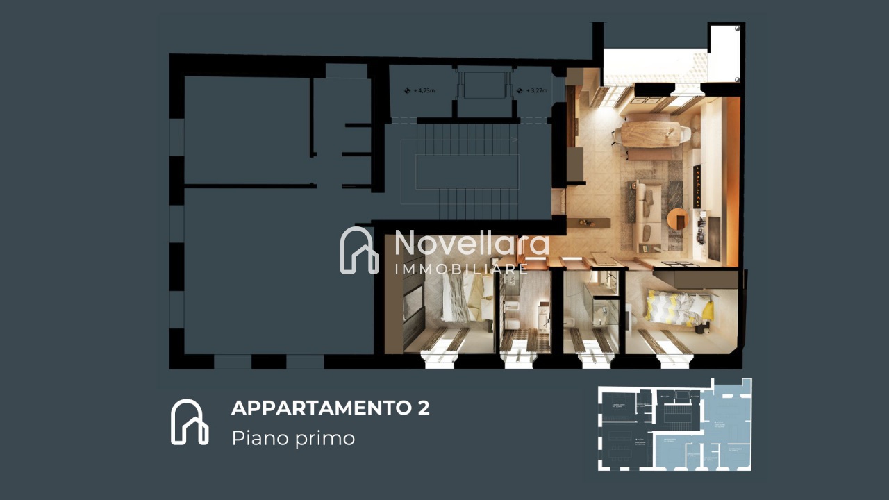 In posizione centralissima, in prestigiosa nuova ristrutturazione sulla Piazza di Novellara, splendido appartamento composto da salone con cucina open space e balcone, 2 camere, 2 bagni, ripostiglio e cantina. Finiture di pregio, ampie vetrate, soffitti alti rendono questo immobile un prestigioso investimento ma con tutti i confort di una nuova ristrutturazione tecnologica e a risparmio energetico. Classe Energetica: A3 - IPE: 0.00kWh/mq anno
