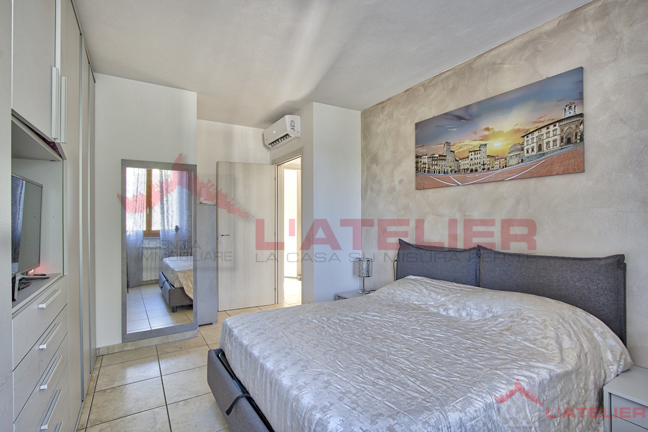 Monte San Savino -- Località Poggio Fabbrelli In vendita appartamento con ingresso indipendente, recente costruzione In un grazioso e tranquillo contesto residenziale, proponiamo in vendita un appartamento di recente costruzione con ingresso indipendente. L'accesso all'abitazione avviene tramite scala coperta che parte dal giardino privato. La zona giorno è composta da un luminoso living con area pranzo e cucina abitabile. La zona notte comprende una camera matrimoniale, una camera doppia e un ampio bagno. All'interno del resede condominiale recintato troviamo un garage, tre posti auto e un grande giardino esclusivo, accogliente e ben curato, dotato di piscina privata fuori terra. L'area è delimitata da una recinzione che garantisce privacy, creando un angolo ideale per momenti di relax. L'immobile è dotato di tutti i comfort: termosingolo, aria condizionata e impianto fotovoltaico. Disponibile da fine maggio. Richiesta: 189.000 -- Rif. A30/V0460 Classe Energetica: F - IPE: 0.00kWh/mq anno