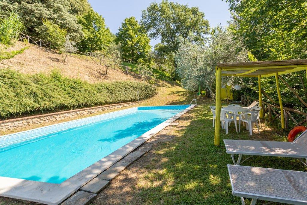 BORGO SAN LOPRENZO Ronta: Bellissima colonica antica ( torre di guardia del 855) in ottime condizioni con grande piscina ( 14 x 6 ) e uno splendido panorama. Circondata da 3 ettari di terreno coltivato a olivi ( circa 350 oliveta specializzata). Olt