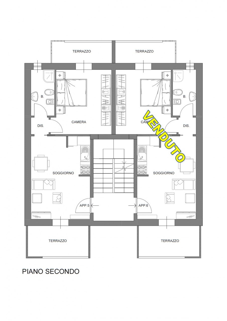 Grosseto via Svizzera zona Cittadella nella nuovissima lottizzazione residenziale in costruendo e modernissimo fabbricato vendesi appartamento al piano attico (piano secondo e ultimo) di vani 2 mq.50 e composti da soggiorno con zona cucina, disimpegno, camera matrimoniale, bagno con finestra e due terrazze per totali mq.13. Completa la proprietà un garage di mq.14 posto al piano terra. Possibilità di personalizzazione della progettazione. Appartamenti di nuova generazione in classe energetica "A" raggiungibile grazie a scelte progettuali orientate su materiali da costruzione ad elevate prestazioni termo isolanti, nonché con l'ausilio di pannelli solari termici per la produzione di acqua calda sanitaria, e pannelli fotovoltaici nonché all'utilizzo di muratura di perimetro in termo-blocchi di laterizio del tipo Tris di spessore 41 cm, all'istallazione di infissi quali finestre e porte finestre in PVC a mescola speciale con vetri basso emissivi da mm 4/20/4 nelle finestre e da mm 4/18/6-7 nelle porte finestre, persiane in PVC rinforzate e portoncino blindato nuova generazione. L'impianto di riscaldamento sarà indipendente a gas con caldaia a condensazione per produzione acqua calda collegata al pannello solare in copertura, radiatori in alluminio del tipo JET. Predisposizione impianto di climatizzazione.