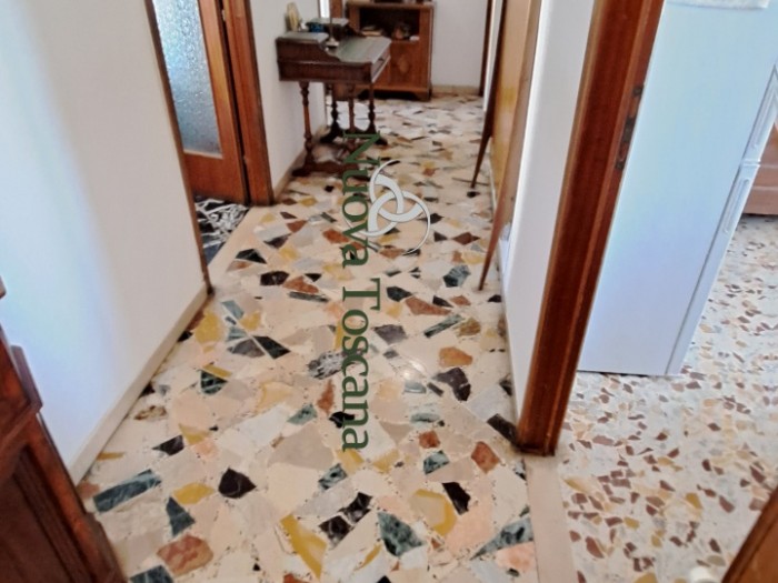 VIA V. Veneto appartamento piano primo con ascensore e aria condizionata molto luminoso, impianto termo-singolo (rifiniture anni '80) mq. 105 commerciali mq. 119 composto da ingresso/corridoio con soggiorno, cucina, bagno, ripostiglio, tre camere, due terrazze rispettivamente mq. 10,00 e mq. 12,00 oltre garage al piano interrato mq. 18 Classe Energetica: F - IPE: 127.20kWh/mq anno