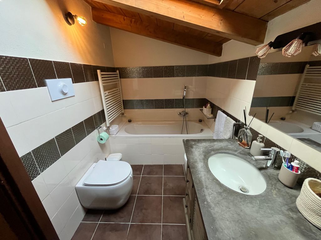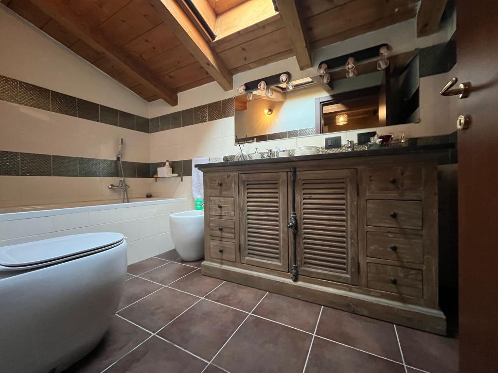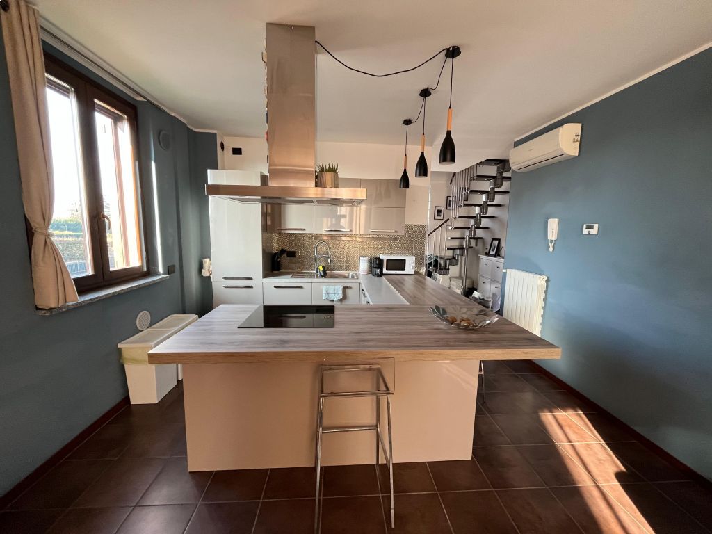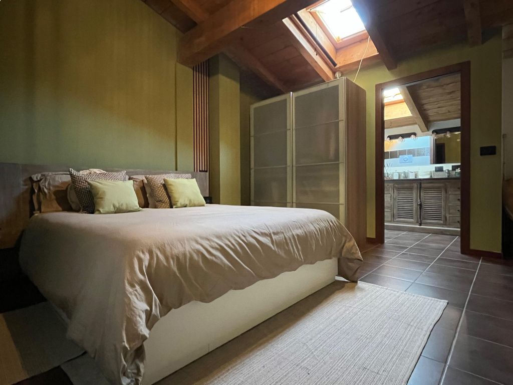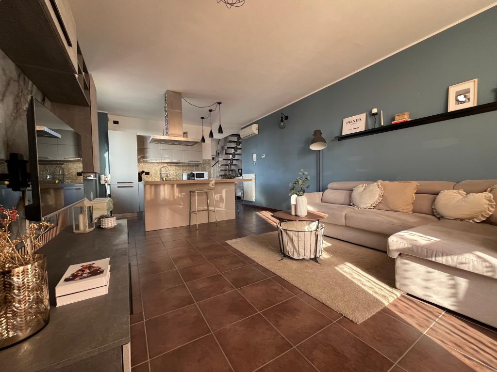 Grazioso appartamento composto da una zona giorno finemente arredata, un bagno ed un balcone. Al piano superiore troviamo la camera matrimoniale con cabina armadio ed un ulteriore bagno. Annessi box e cantina. IL TUTTO VIENE VENDUTO COMPLETAMENTE ARREDATO E SENZA SPESE CONDOMINIALI!!! Classe Energetica: D - IPE: 118.00kWh/mq anno