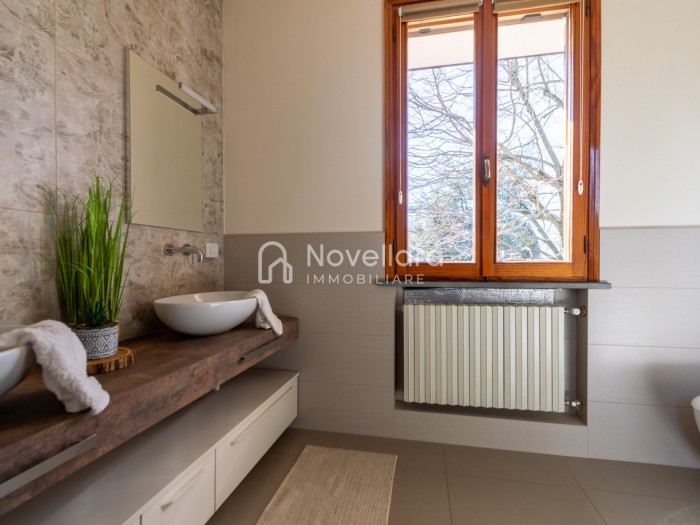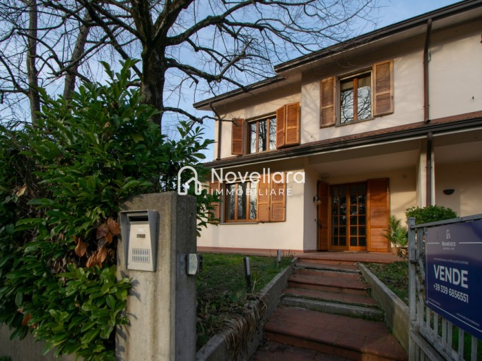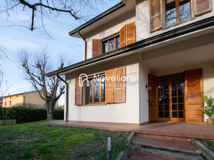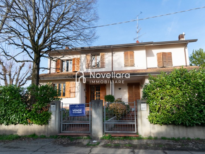 In un quartiere tranquillo e riservato, a due passi a piedi dal centro di Novellara, in zona piscine, proponiamo in vendita casa affiancata, di recente ristrutturazione interna. La proprietà ti accoglie su ingresso e luminoso soggiorno con camino, salendo qualche scalino si arriva alla grande cucina moderna con zona pranzo, con affaccio sul balcone, ideale per chi ama cucinare o condividere momenti di convivialità con amici e parenti. Il piano primo si compone di due grandi camere matrimoniali, camera singola, ideale come stanza per bambini, studio o ospiti e ampio bagno finemente rifinito con doppio lavandino. Al piano sottotetto si accede ad una grande soffitta mansardata, perfetta come spazio ripostiglio o deposito. L'immobile si completa al piano seminterrato con bagno finestrato con lavanderia, cantina e doppia autorimessa di oltre 25mq. Circonda l'immobile ampio giardino. La soluzione perfetta per una famiglia che cerca ampi spazi e la tranquillità di un quartiere residenziale, ma comodo a tutti i servizi. Questa casa è stata valorizzata con il servizio di Home Staging, a cura di Sara Brunazzi.