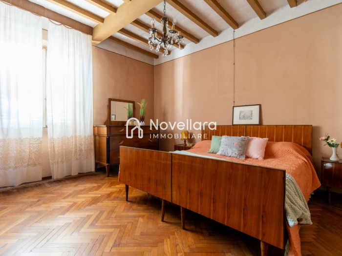 Appena fuori dal centro, circondata da un ampio parco alberato, casa singola di generose dimensioni. La proprietà ti accoglie al piano terra su luminoso ingresso, cucina con tinello, soggiorno e salotto, con possibilità di creare una camera da letto al piano terra. Al piano primo troviamo 3 grandi camere da letto matrimoniali, bagno e lungo corridoio che affaccia su 2 graziosi balconi. Al secondo ed ultimo piano spazioso sottotetto praticabile dove poter ricavare una comoda mansarda. Al piano seminterrato pratici spazi cantina. L'immobile si completa con doppia autorimessa di 35 mq, ampio fabbricato adibito a laboratorio artigianale e delizioso portico che ti conduce al giardino privato retrostante. Questa casa è stata valorizzata con il servizio di Home Staging, a cura di Sara Brunazzi.