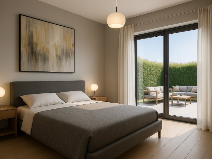 Bilocale nuovo in Finalpia, collocato in una zona residenziale pianeggiante e ben servita, a breve distanza dal mare e dal centro del quartiere. L'abitazione consente di vivere il contesto circostante in modo pratico, con servizi, scuole, negozi e spiagge facilmente raggiungibili a piedi. L'alloggio è inserito in un intervento di nuova costruzione di livello elevato, caratterizzato da architettura terrazzata e alloggi parzialmente sovrapposti. Questa soluzione progettuale garantisce una migliore gestione degli spazi, maggiore riservatezza e una qualità abitativa superiore rispetto alle costruzioni tradizionali. Il bilocale sviluppa una superficie commerciale di 55,76 mq, è dotato di terrazzo di 12,02 mq e di giardino privato di 50,70 mq, direttamente collegato alla zona giorno. Gli spazi interni sono ben proporzionati e pensati per un utilizzo quotidiano confortevole. Classe energetica A4, struttura in cemento armato, serramenti scorrevoli in PVC con vetrocamera e tapparelle. Impianto autonomo con pompa di calore per riscaldamento, raffrescamento estivo e produzione di acqua calda sanitaria. Autorimessa pertinenziale obbligatoria, non inclusa nel prezzo. Box al piano interrato disponibili a partire da 55.000, collegati all'abitazione tramite ascensore. Classe Energetica: A4 - IPE: 0.00kWh/mq anno