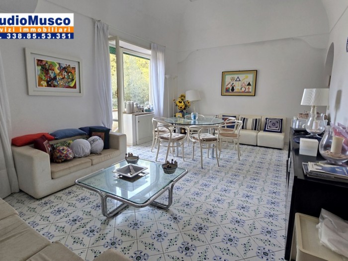 StudioMusco vende ad Anacapri appartamento indipendente in piccolo parco. L' immobile dispone di giardino privato di circa 200mq, tre camere da letto, due bagni, soggiorno, cucina. Sono circa 80 mq netti interni. Il giardino privato è molto fruibile,