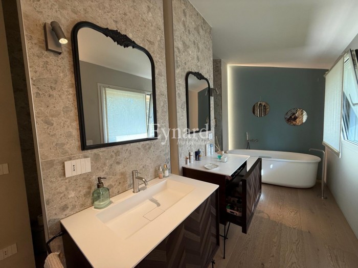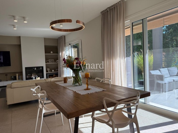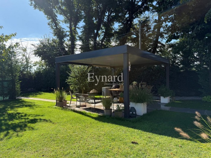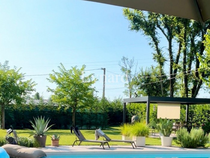 1361 Osio Sopra proponiamo Porzione di cascina immersa nel verde di 215mq con giardino di 1600mq, finemente ristrutturata con interventi di altissima qualità, sia sotto il profilo tecnologico, che nella scelta di materiali di pregio. L'immobile conserva intatto il fascino del contesto agreste in cui è inserito, all'interno del suggestivo parco del fiume Brembo. Soluzioni ideale per chi ama la natura, gli animali e gli ampi spazi, garantendo al contempo massima privacy. Un'oasi di pace e relax perfetta per chi desidera vivere lontano dal caos,senza rinunciare al confort. L'abitazione è composta al piano terra da ingresso, luminoso soggiorno con camino e ampie vetrate affacciate sul giardino, cucina, locali tecnici, ripostiglio, lavanderia e bagno. Al piano primo troviamo due spaziose camere da letto, bagno, disimpegno e una grande camera matrimoniale con cabina armadio e ampio bagno privato. La proprietà è circondata da un giardino finemente piantumato e curato, impreziosito da una splendida piscina dotata di sterilizzatore salino, copertura elettrica automatica, pompa di calore e sistema di controllo automatico dell'acqua. La villa è inoltre dotata di: sistema antifurto e videosorveglianza Risco. Impianto fotovoltaico da 7,8 kW con batteria di accumulo, connessione satellitare Starlink, riscaldamento a pavimento, raffrescamento canalizzato idronico, produzione di acqua calda sanitaria tramite pompa di calore, termoregolazione per ogni stanza con controllo remoto. Box coperto. Serra - Pergola L'immobile è in Classe Energetica A4 -- 21,25 kWh/m² anno, garanzia di massima efficienza energetica e comfort abitativo. Irrigazione automatica Pavimenti e rivestimenti in gres porcellanato cotto D'este sp14 (60x120). Maxi listoni parquet rovere reparto notte e bagni. Sanitari sospesi Catalano Green . Rubinetteria GESSI acciaio inox satinato. Portoncino ingresso antieffrazione classe 3 OIKOS. Serramenti alluminio serie slim con vetro camera. Oscuranti in alluminio Griesser automatici, antoni piano superiore automatici. Zanzariere. Impianto elettrico Bticino living now. Casa smart gestione della domotica tramite App smart ome. Pavimentazione esterna grès sp 15. Filodiffusione in giardino. Classe Energetica: A4 - IPE: 21.25kWh/mq anno