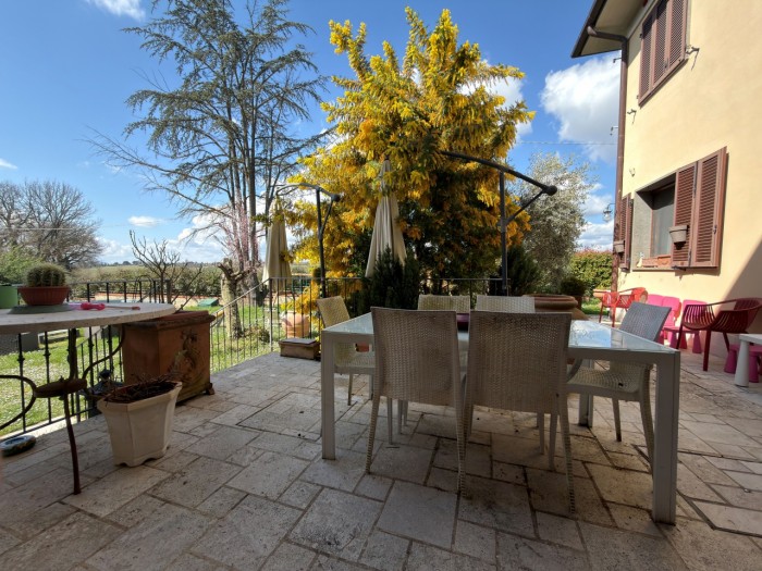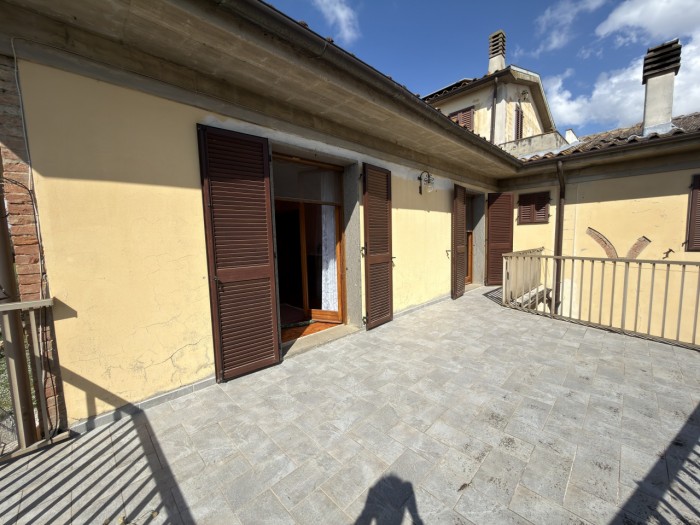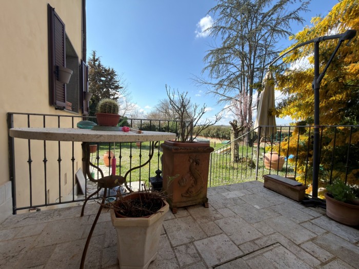 Monteaperti, immerso nel verde della campagna senese ma a pochi km dal centro di Siena, proponiamo in nostra esclusiva di vendita, una porzione di trifamiliare con giardino. La proprietà si sviluppa con l'ingresso indipendente dal cancello privato che ci immette nello splendido e ampio giardino che circonda la casa. Dal piano terra rialzato entriamo nell'ingresso dove si apre subito il bellissimo salone con accesso al terrazzo direttamente collegato al giardino, lo stesso collegamento lo ritroviamo nella cucina , recentemente ristrutturata, completa il piano di ingresso un bagno, un ripostiglio e un locale tecnico dove sono posizionati gli impianti. Una bella e comoda scala ci porta al piano superiore e alla zona notte composta da quattro camere di cui due con accesso diretto ad un ampio terrazzo/solarium, due bagni anche questi recentemente ristrutturati e un ripostiglio completano il piano. Oltre ai posti auto all'interno della proprietà l'offerta comprende un ampio garage di circa 49mq. Ottima proposta per chi ricerca indipendenza unita a grandi spazi interni ed esterni senza privarsi della comodità dei servizi della città che si trova a pochi km di strada a 4 corsie (Siena-Bettolle). Classe Energetica: non dichiarata