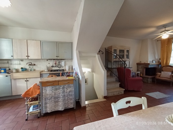 Capezzano Pianore , villetta in bifamiliare , con giardino su tre lati e posto auto . Costruita circa 15 anni fa , è composta da : piano rialzato interamente adibito a zona giorno , con camino e cucina a vista , veranda . Piano primo con camera matrimoniale servita da un bel terrazzo coperto , cameretta , bel bagno con doccia . Nel semi interrato si trovano un bel soggiorno ed un bagno . Il giardino ha superficie di circa mq 100 , la villetta è predisposta per l aria condizionata . La zona è comoda per la vicinanza ai negozi ed il mare si raggiunge facilmente . Classe Energetica: C - IPE: 67.58kWh/mq anno