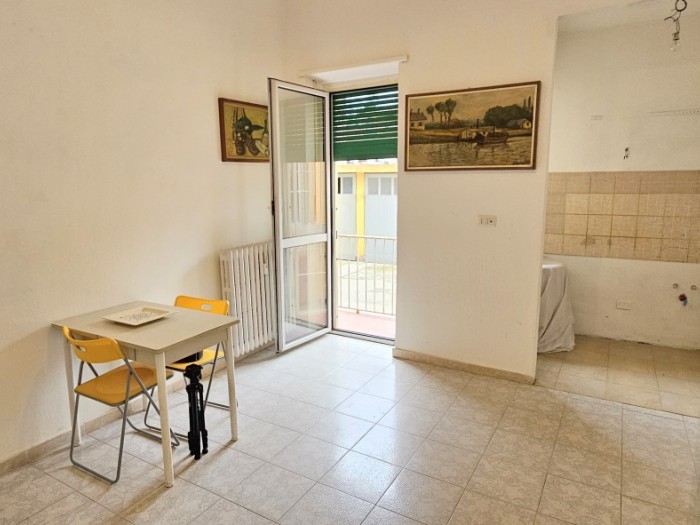 In posizione comoda ai servizi proponiamo in vendita appartamento al piano rialzato composto da ingresso, tinello con cucinino, una camera da letto, ripostiglio, servizio e balcone. La proprietà si completa di un locale ad uso cantina al piano int