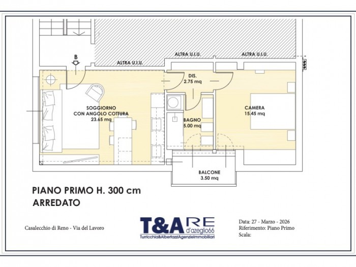 CASALECCHIO DI RENO, In Via del Lavoro proponiamo un immobile a pochi minuti da Centro Meridiana, uno dei principali poli commerciali della zona, e vicino al suggestivo Parco Talon, perfetto per passeggiate, sport e momenti di relax immersi nel verde. L'immobile di 57,91mq commerciali, al primo piano senza ascensore e' composto da un appartamento di 55,71mq con ingresso su soggiorno con angolo cottura, disimpegno notte, camera da letto, bagno. Completa la proprieta' un un balcone di 4,39mq ed una cantina al piano terra. La posizione e' particolarmente comoda anche per raggiungere Bologna, grazie ai collegamenti rapidi sia in auto che con i mezzi pubblici, rendendo questa soluzione ideale anche per chi lavora in citta' ma desidera vivere in un contesto piu' tranquillo. Questa soluzione rappresenta un'ottima opportunita'' sia come prima casa che come investimento, grazie alla posizione strategica, alla presenza di spazi esterni e alla vicinanza a tutti i principali servizi: scuole, supermercati, negozi e vie di comunicazione. Per Info: Davide: 3209477119 - d.napolitano@teare.it Classe Energetica: C - IPE: 0.00kWh/mq anno