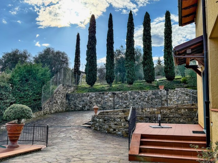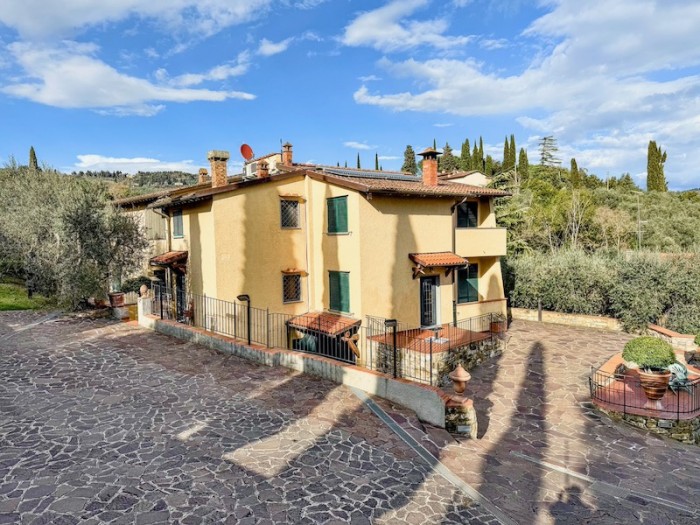 Firenze Sud - Fiesole, Località Girone - Villa indipendente sviluppata su più livelli e suddivisa in quattro appartamenti oltre locali accessori quali garage e cantina. In particolare: Unità A: Appartamento con ingresso indipendente al piano terra composto di soggiorno con cucina a vista, disimpegno, quattro camere di cui tre matrimoniali, due bagni, ripostiglio, oltre balcone/loggia. (Superficie Cat. 136 mq) Unità B: Appartamento bilocale con ingresso indipendente da resede esclusivo composto di zona giorno con angolo cottura, piccolo disimpegno, bagno e camera con accesso a balcone/ loggia. (Superficie Cat. 57 mq) Unità C: Appartamento ubicato al piano primo con accesso da vano scala in comune con l'unità D composto di ampio ingresso, zona giorno con cucina a vista, disimpegno, quattro camere di cui tre matrimoniali, due bagni, ripostiglio, veranda, oltre balcone/loggia. A servizio dell'unità immobiliare al piano secondo con accesso dal disimpegno il sottotetto che permette l'accesso ad una terrazza panoramica. (Superficie Cat. 147 mq) Unità D: Appartamento bilocale al piano primo con accesso da vano scala in comune con l'unità C composto di soggiorno con angolo cottura, piccolo disimpegno, camera, bagno oltre balcone/loggia. (Superficie Cat. 54 mq) Unità E: Locale cantina ubicato al piano seminterrato con accesso sia dal vano scala a comune che esterno composto di due locali e due ripostigli. Superficie 54 mq Unità F: Locale garage con ripostiglio e locale adibito a centrale termica ubicato al piano seminterrato con accesso indipendente esterno. Superficie 50 mq Unità G: Locale serra di 12 mq. Oltre ad un ampio porticato attrezzato con forno e barbecue, ideale per pranzi e cene all'aperto, un piazzale lastricato che può ospitare comodamente più auto, giardino e terreni terrazzati coltivati ad uliveto per circa 3.000 mq (155 piante di ulivo che producono mediamente ogni anno circa 220 litri di olio). Tutta la proprietà presenta elementi e rifiniture in cotto e pietra oltre muri a sasso che ci accompagnano in tutta la proprietà. La villa si presenta in perfetto stato sia internamente che esternamente così come gli impianti a servizio. Tre appartamenti su quattro sono stati completamente ristrutturati nel 2006; la villa è dotata di climatizzatori, porte in castagno, inferriate di sicurezza, pannelli solari, i contatori delle utenze sono separati, pozzo e depositi per l'acqua. Le varie unità abitative possono essere facilmente riunificate in base alle esigenze dei nuovi proprietari. La proprietà è in una posizione rialzata, di pregio, vicina ad altre ville, in posizione non isolata a dieci minuti di auto dal centro di Firenze, e a pochi passi dalla villa, si raggiungono Santa Maria Maggiore e il cuore di Firenze in 30 minuti di autobus. Ideale sia come villa di rappresentanza, proprietà per più nuclei familiari o come investimento da mettere a reddito. Proprietà in vendita in esclusiva. Richiesta euro 1.380.000 Rif. 105 - TEL. 334.23.56.902 Classe Energetica: non dichiarata